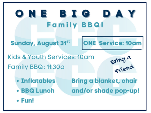 Join us Sunday, August 31st for a special ONE-SERVCE celebration at 10a!!